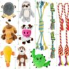 ?HAPPY GAMING-SELF & INTERACTIVE PLAYING DOG TOYS FOR BOREDOM: Stuffed animal dog squeaky toys make a cute sound always attract your pup and keep them busy in a good mood. They tossing, chasing, or running towards you with toys, inviting you to play fetch games. Cotton dog rope toys of different lengths for pull or tug of war games between dogs or with you, that positively enhanced the friendship. Various toys for dogs get fun anywhere, anytime, and relax you when busy.